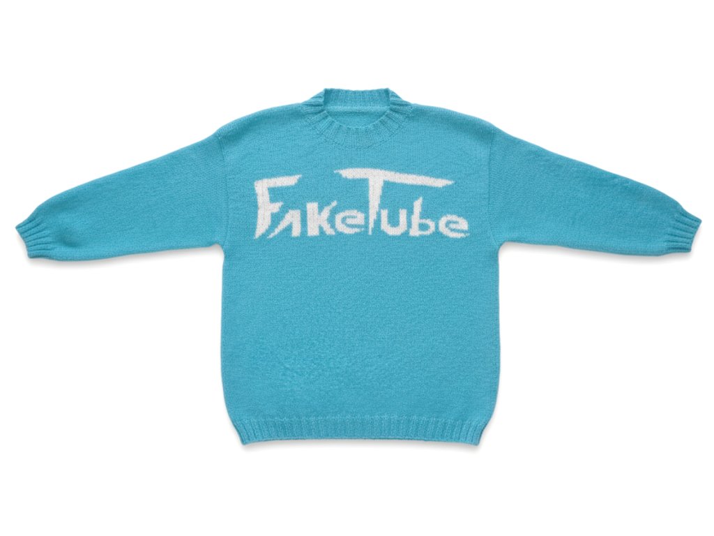 Unikátní design: Výrazná azurová barva s ikonickým vyplétaným nápisem FakeTube, který nikdo nepřehlédne.